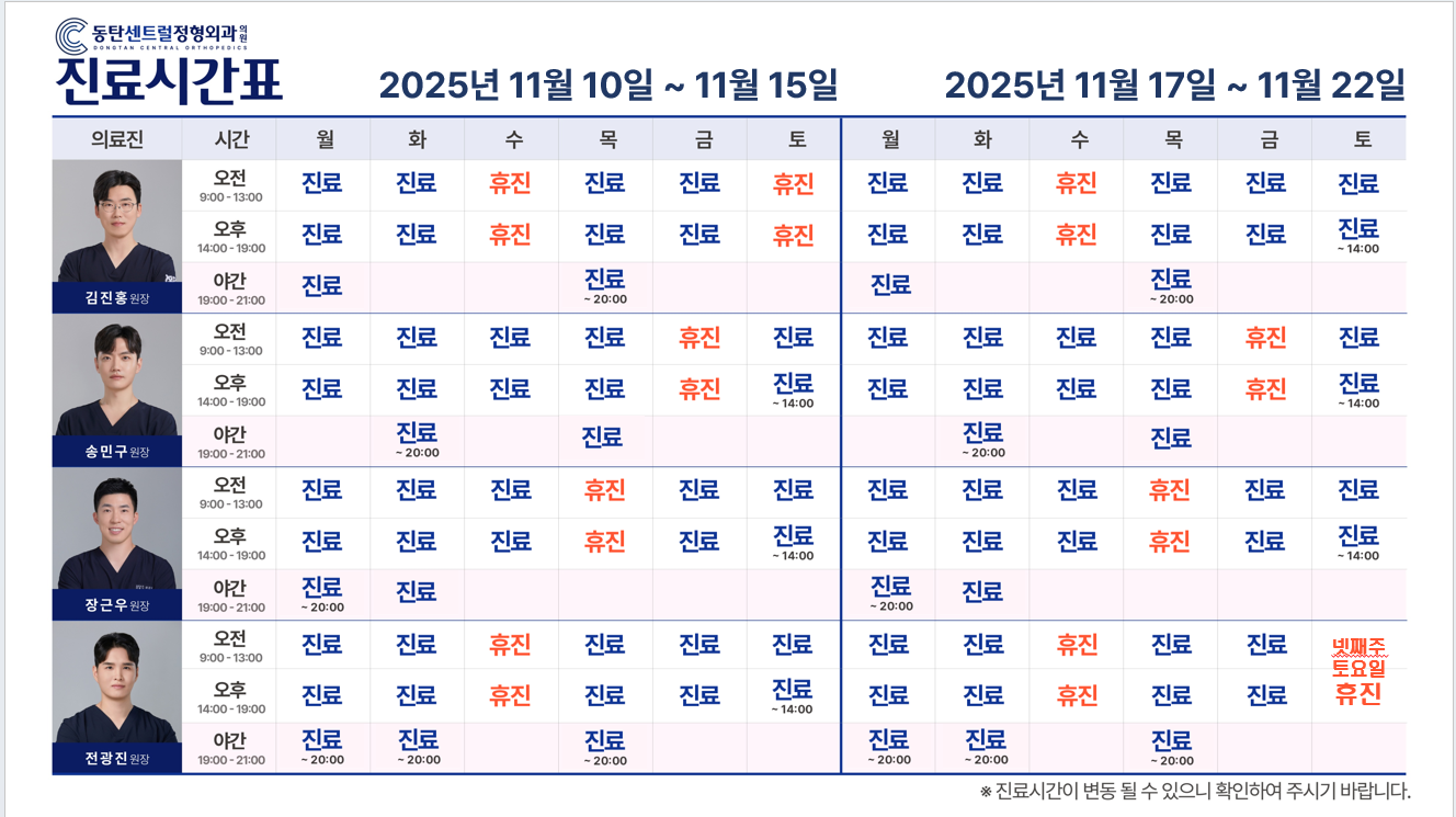 µ¿Åº¼¾Æ®·²Á¤Çü¿Ü°ú 11¿ù Áø·áÀÏÁ¤ÀÌ¿À´Ï, ³»¿ø¿¡ Âü°íÇϽñ⠹ٶø´Ï´Ù.