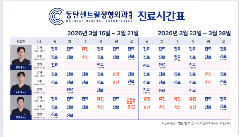 µ¿Åº¼¾Æ®·²Á¤Çü¿Ü°úÀÇ¿ø 3¿ù Áø·áÀÏÁ¤ÀÌ¿À´Ï, ³»¿ø¿¡ Âü°íÇϽñ⠹ٶø´Ï´Ù.